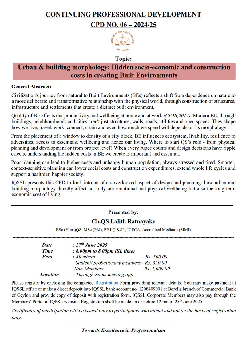 | Event | CPD 6 (2025) - Urban and Building Morphology | View | 123 days |